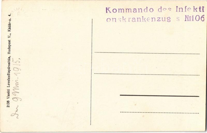 1915 Szatmárnémeti, Szatmár, Satu Mare; Pályaudvar, vasútállomás, vasutasok / railway station, railwaymen + "Kommando des Infektionskrankenzuges No. 106."