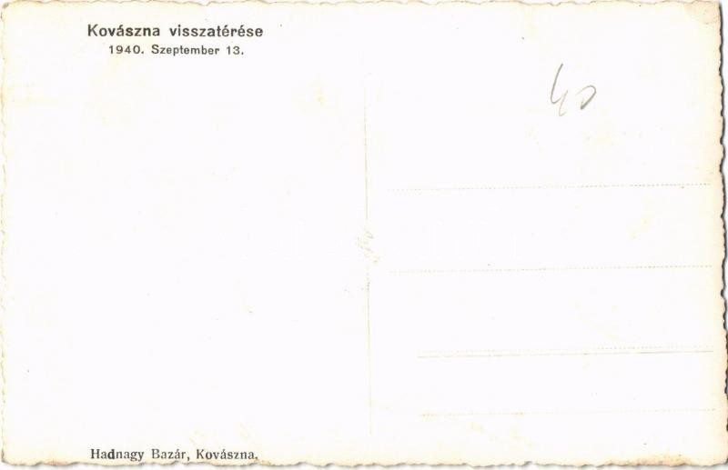 Kovászna, Covasna; Iparvasút Kovászna és Komandó között. Kovászna viss... https://www.darabanth.com/en/361-Online-auction/361.0/Postcards/Transylvania~1500007/Kovaszna-Covasna-Iparvasut-Kovaszna-es-Komando-kozott-Kovaszna-visszaterese-1940-szept~II2080135
