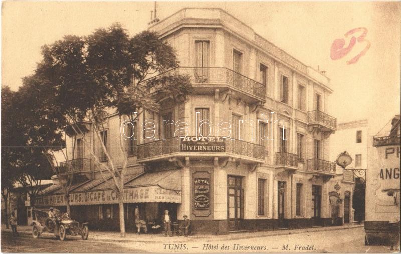Tunis, Hotel des Hiverneurs, Café de Carthage, automobile (gluemark)