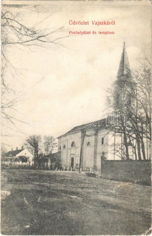 1913 Vajszka, Vajska; Posta és templom / post office, church (EK)
