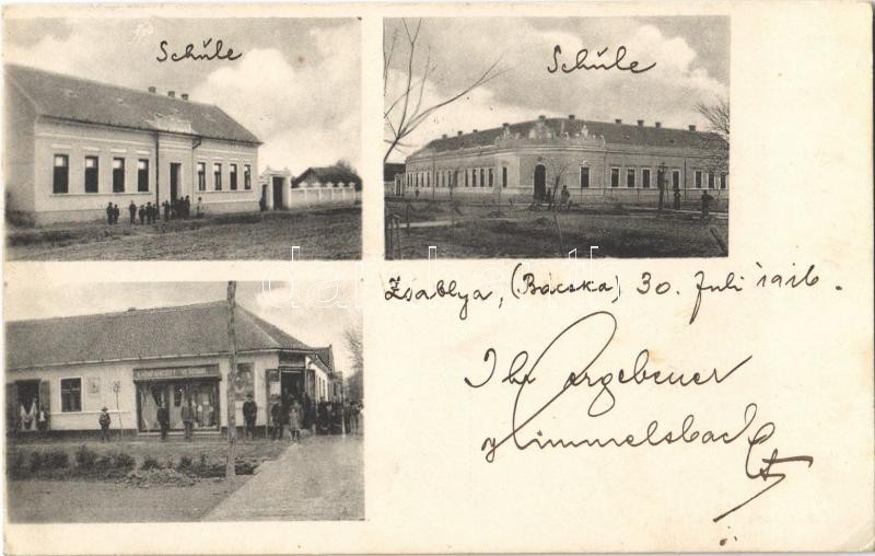 1916 Zsablya, Zabalj; Szerb iskola, Karapancsity Vladimir üzlete és saját kiadása / Serbian school, publisher's shop (EK)