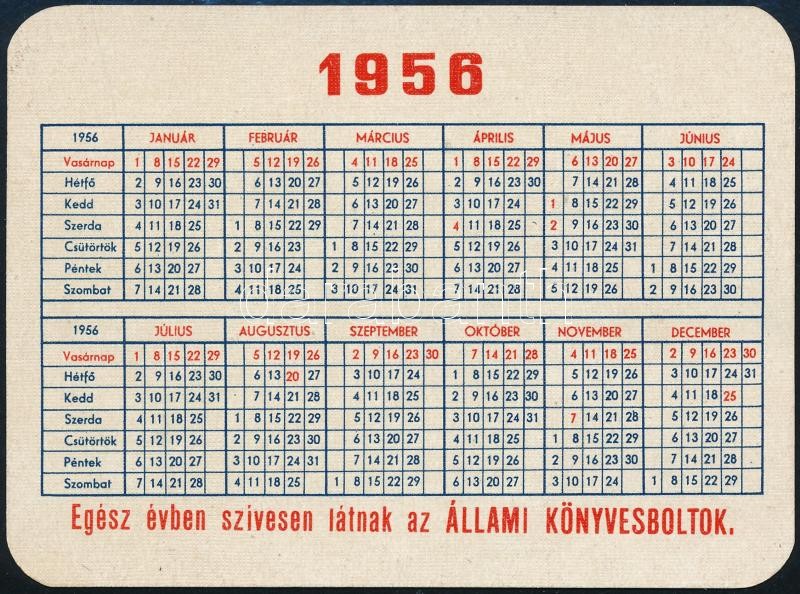 1956 Olcsó könyvtár reklámos kártyanaptár