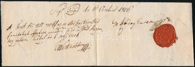 Description: 1806 Ifj. gróf Ráday Gedeon, Ráday Gedeon költő és politikus fia, az első grófi rangra emelt Ráday saját kezű aláírása és családi pecsétje gróf Wartensleben Károly által kölcsönbe vett pénz átvételi elismervényén