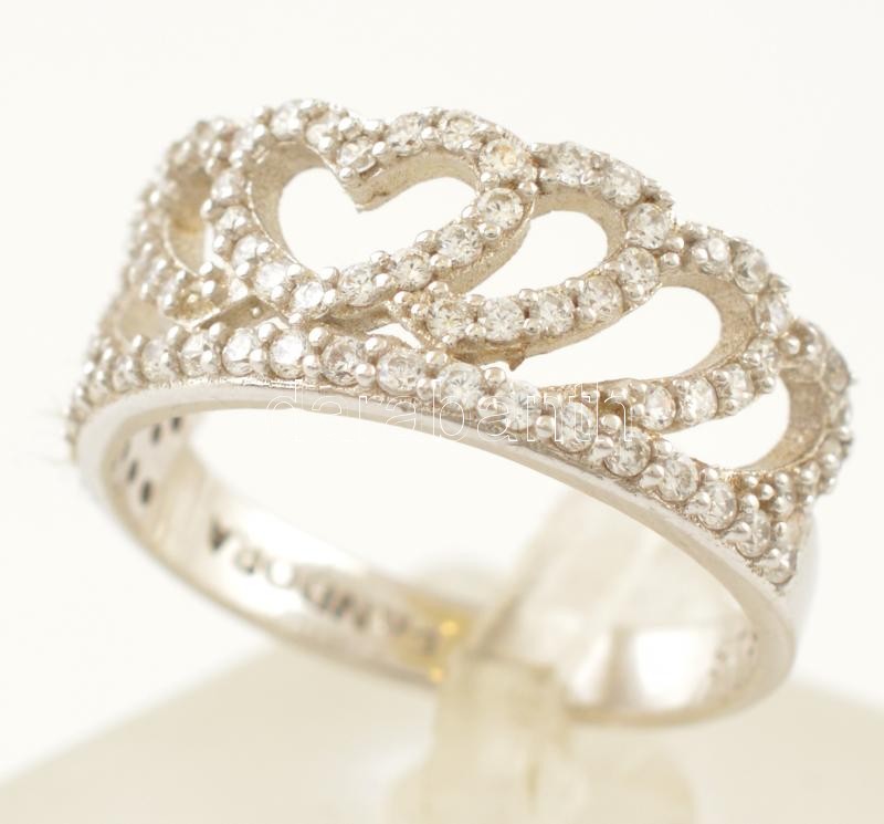 Ezüst(Ag) koronás gyűrű, apró kövekkel, Pandora jelzéssel, méret: 57, bruttó: 3,2 g