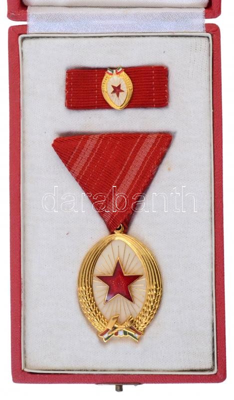 1964. "A Munka Érdemrend" arany fokozata, zománcozott Br kitüntetés szalagon, miniatűrrel és szalagsávval tokban T:1-