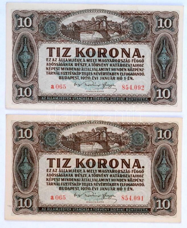 1920. 10K (2x) sorszámkövetők T:II