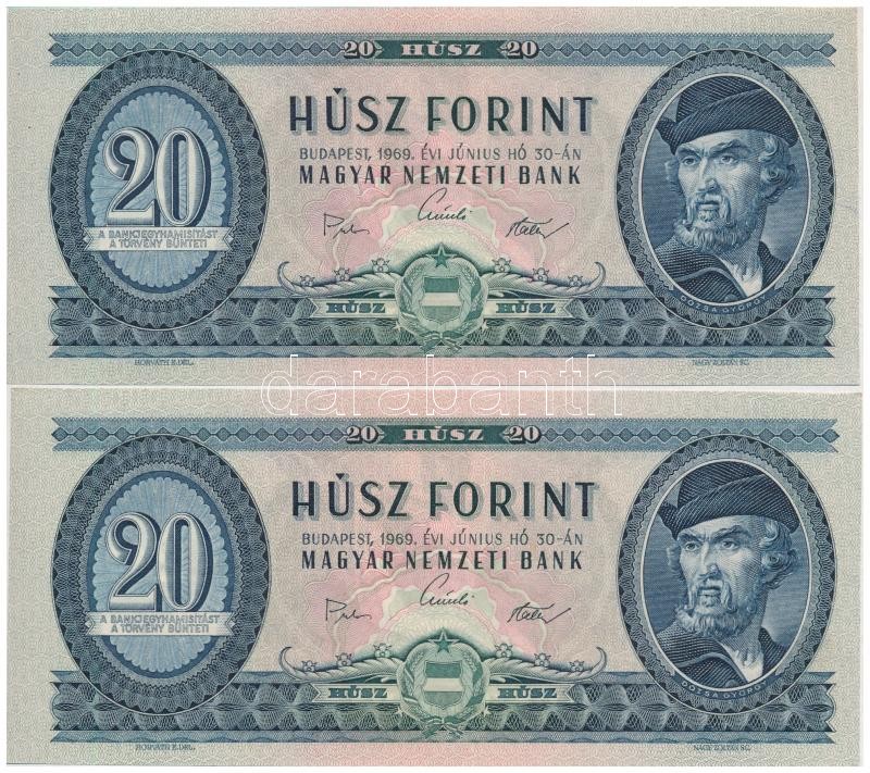 1969. 20Ft (2x) sorszámkövetők "C688 198745 - C688 198746 T:I