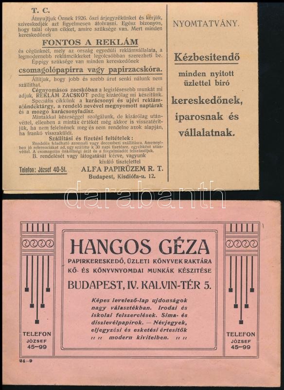 Bp., Alfa Papírüzem Rt. árj... https://www.darabanth.com/en/363-Online-auction/363.0/Art-and-other-collectibles/Advertisement~500022/cca-1920-1930-Vegyes-reklam-tetel-3-db--Bp-Alfa-Papiruzem-Rt-arjegyzek-nyomtatvanya-re~II2096099