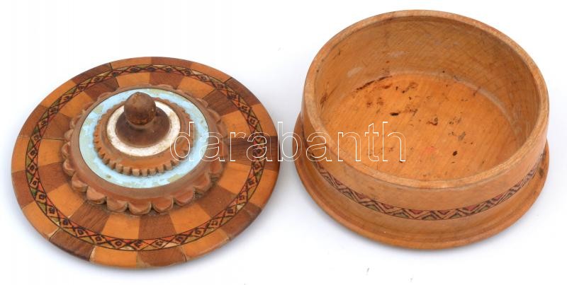 Intarziás fa dobozka, festett, d: 14,5 cm
