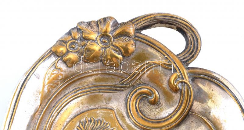 Szecessziós ezüstözött alpakka füles kínáló, jelzés nélkül, kopott, 37...
