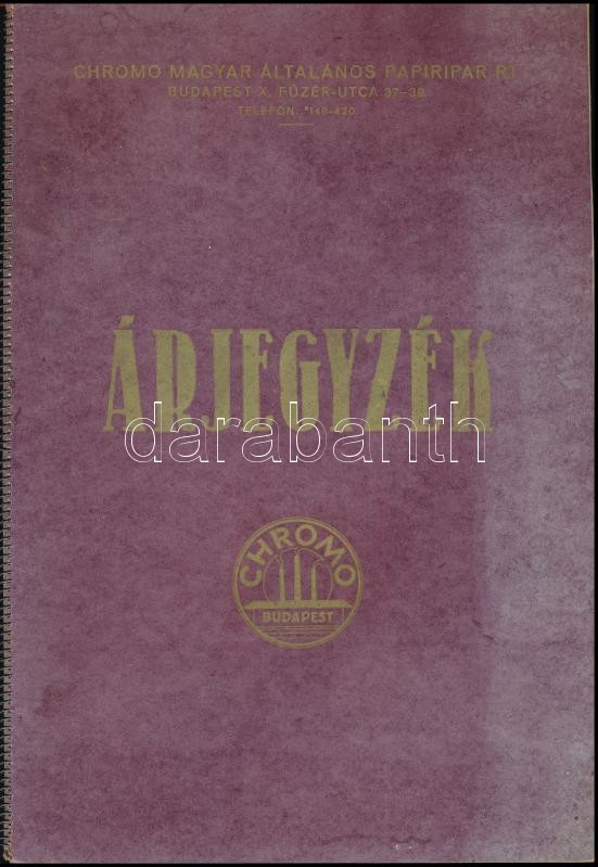 1941 Bp. X., Chromo Magyar Általános Papíripar Rt. árjegyzék, 21p