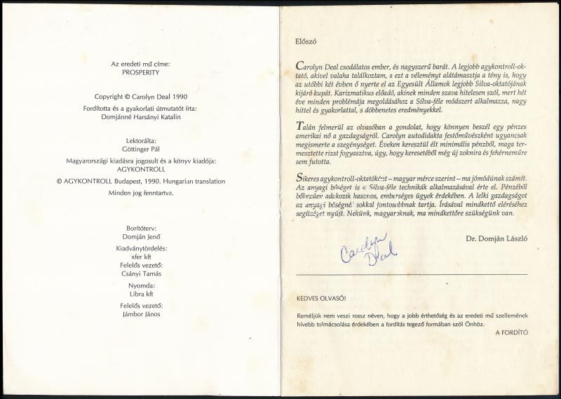 Carolyn Deal: Gazdagság. Agykontroll füzetek 1. Ford. és a gyakorlati ... https://www.darabanth.com/en/363-Online-auction/363.0/Art-and-other-collectibles/Printed-Materials~500030/Carolyn-Deal-Gazdagsag-Agykontroll-fuzetek-1-Ford-es-a-gyakorlati-utmutatot-irta-Domjann~II2096942