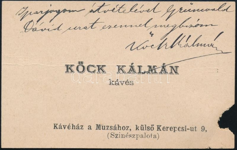 cca 1910 Köck Kálmán (Kerepesi út 9.) kávés meghívó névjegye
