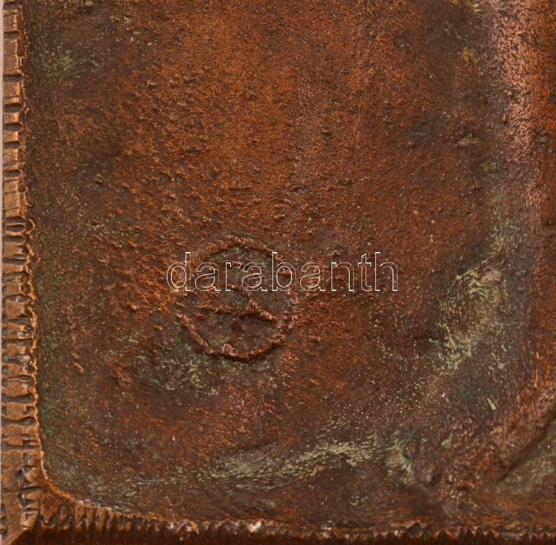 Czinder Antal (1937-): Női akt (Villon idézettel). Bronz falikép, jelz...