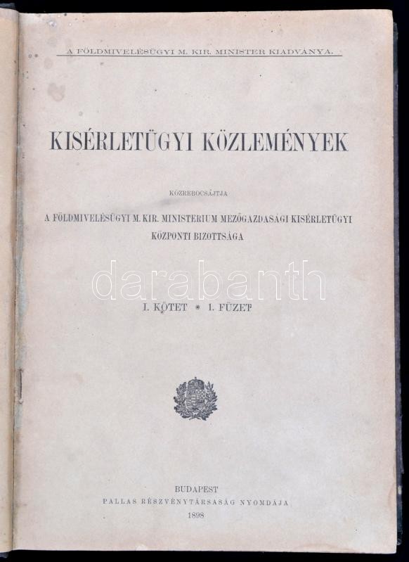 Kísérletügyi közlemények. Bp., 1898, Pallas. Foltos, kopott félvászon kötésben.