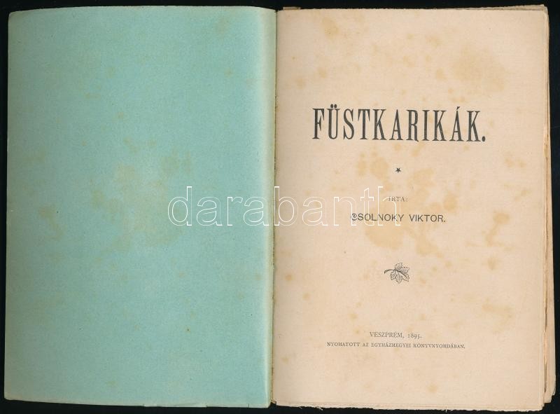 [Cholnoky Viktor] Csolnoky Viktor: Füstkarikák. Veszprém, 1895, Egyházmegyei Nyomda, 199 p. Első kiadás. Kiadói papírkötésben, kijáró lapokkal.