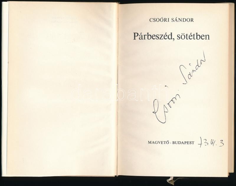 https://www.darabanth.com/en/363-Online-auction/363.0/Books/Books-Other-rarities~1000018/Csoori-Sandor-Parbeszed-sotetben-Bp-1973-Magveto-Elso-kiadas-Kiadoi-egeszvaszon-k~II2093854