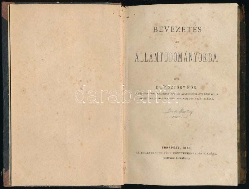 Dr. Pisztóry Mór: Bevezetés az államtudományokba. Bp., 1876., Eggenber... https://www.darabanth.com/en/363-Online-auction/363.0/Books/Books-Other-rarities~1000018/Dr-Pisztory-Mor-Bevezetes-az-allamtudomanyokba-Bp-1876-Eggenberger-Hoffmann-es-Molnar~II2095184