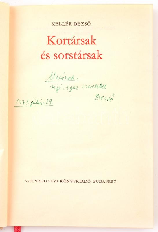 Kellér Dezső: Kortársak és sorstársak. Bp., 1971., Szépirodalmi Kiadó....