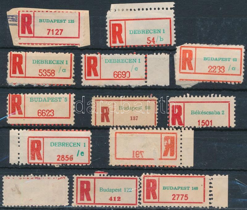 13 db ajánlási ragjegy: elfogazások, gépszínátnyomat, tömbfog, kettős fogazás