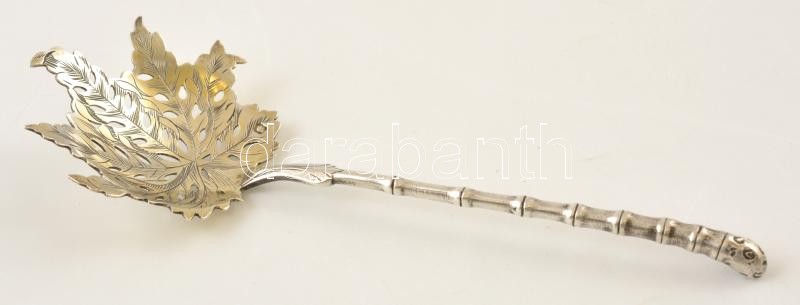 Ezüst(Ag) áttört leveles díszkanál, jelzett, h: 14,5 cm, nettó: 22,8 g