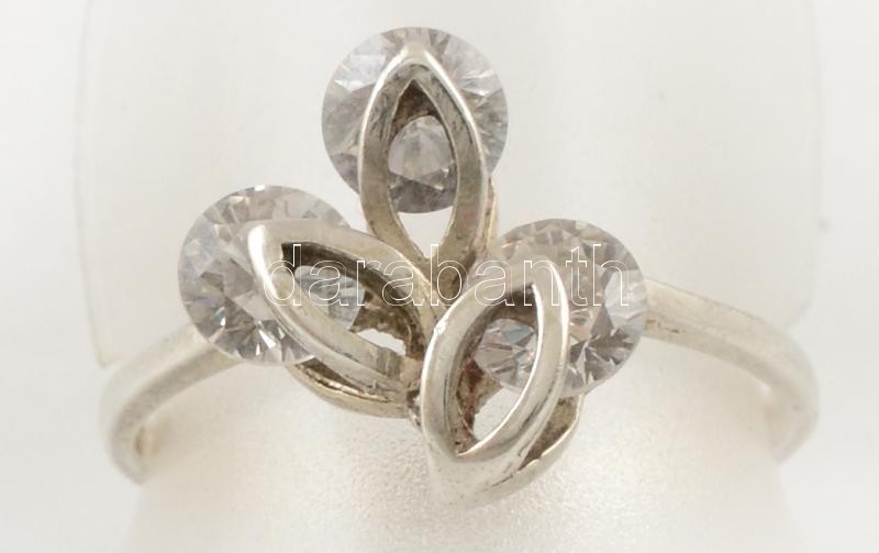 Ezüst(Ag) háromköves gyűrű, jelzett, méret: 55, bruttó: 2,3 g