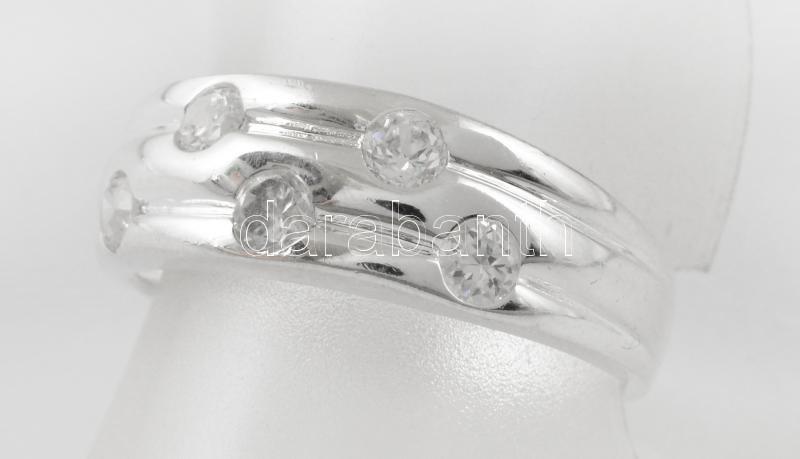 Ezüst(Ag) háromsávos, köves gyűrű, jelzett, méret: 57, bruttó: 3,7 g