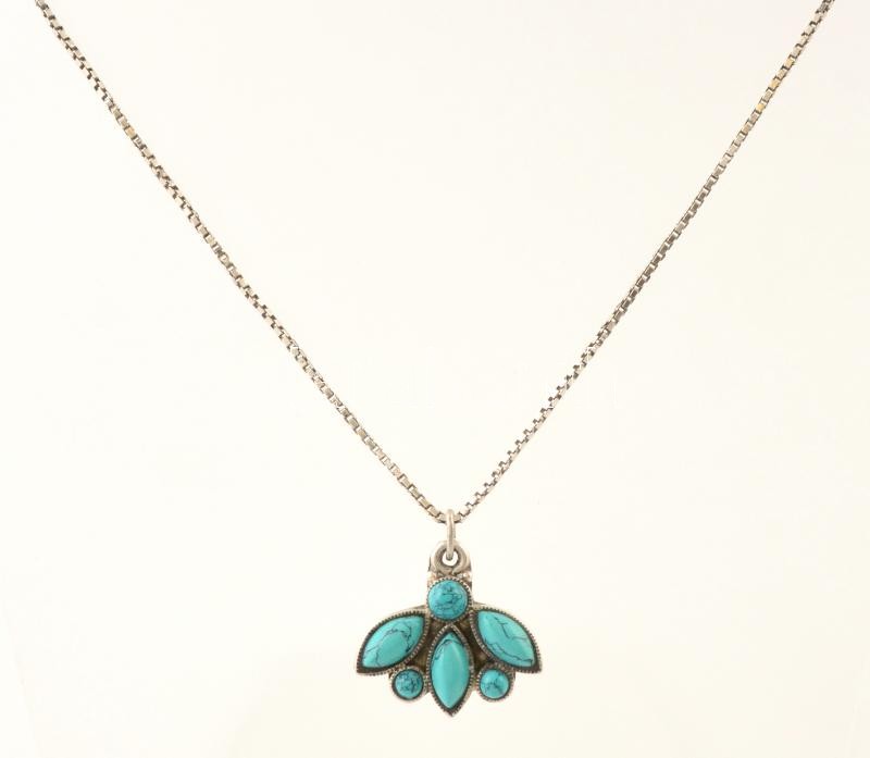 Ezüst(Ag) venezianer nyaklánc, köves medállal, jelzett, h: 48 cm, 2×2 cm, bruttó: 9,6 g