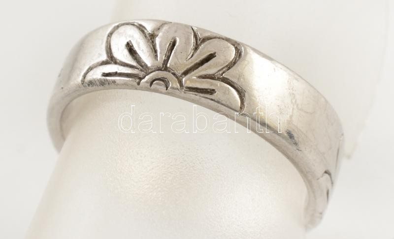 Ezüst(Ag) virágmintás gyűrű, jelzett, méret: 51, nettó: 3,8 g