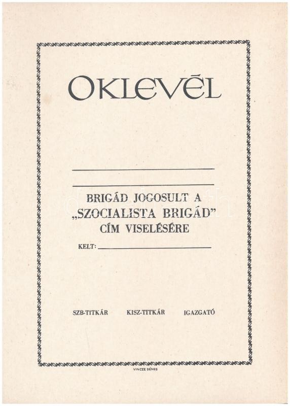 ~1970-1980. 5db "A Szocialista Brigád" viselésére jogosító kitöltetlen oklevél