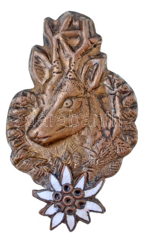 DN Őzbak formájú turistajelvény havasi gyopárral, részben zománcozott Br jelvény (39x24mm) T:1-