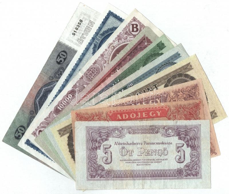 10db-os vegyes magyar korona, pengő, adópengő és forint bankjegy tétel T:I--III