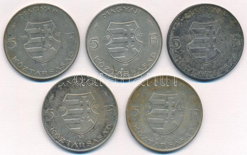 https://www.darabanth.com/en/363-Online-auction/363.0/Numismatics/Hungarian-coins-and-coins-with-Hungarian-mint-marks~2000008/1947-5Ft-Ag-Kossuth-5x-T2-3-patina-Adamo-F81~II2094433