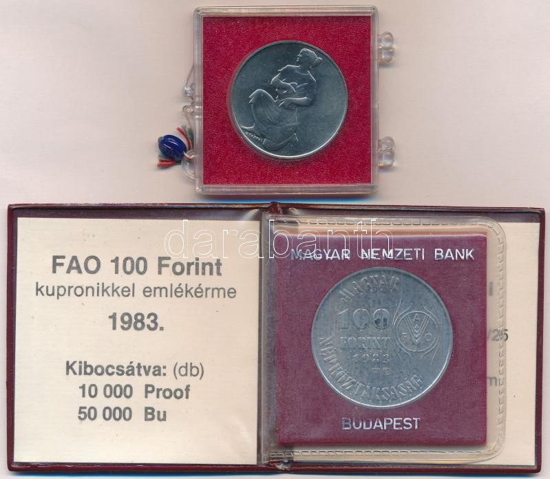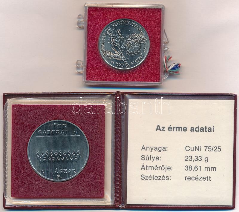 https://www.darabanth.com/en/363-Online-auction/363.0/Numismatics/Hungarian-coins-and-coins-with-Hungarian-mint-marks~2000008/1981-100Ft-Ni-FAO-I-Vilagelelmezesi-nap-APV-plombalt-muanyag-tokban-plus-1983-100ft-Cu-Ni-~II2094027