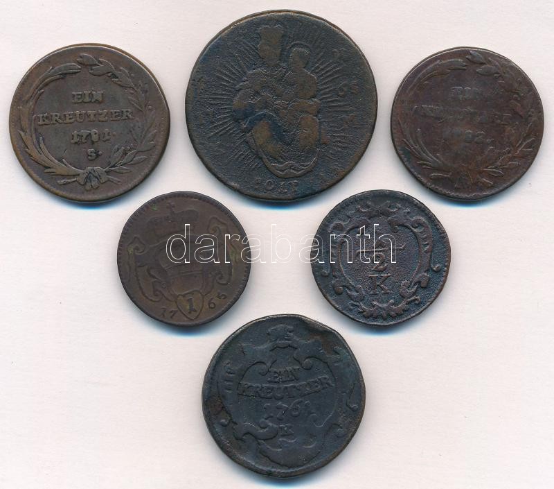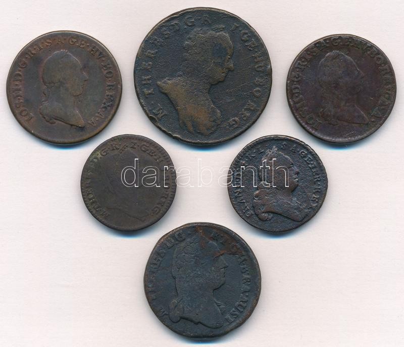 6db-os vegyes magyar és osztrák rézpénz tétel, közte 1765PH-KM Poltúra "Mária Terézia", Ausztria 1764. 1/2kr Cu "Lotharingiai Ferenc" T:2-,3