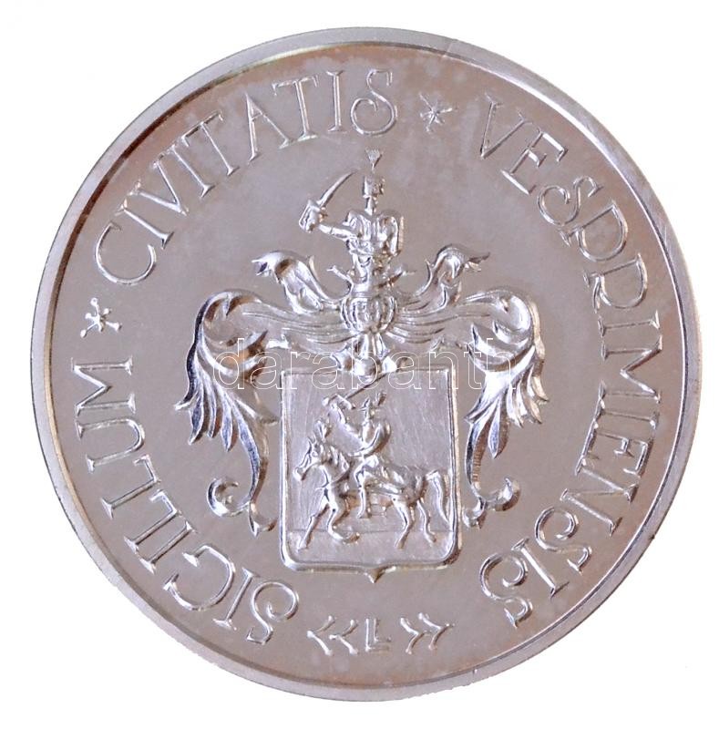 Lugossy László (1944-) DN "Veszprém a királynék városa / Sigillum Civitatis Vesprimensis" ezüstözött fém emlékérem, eredeti tokban (42,5mm) T:1 patina
