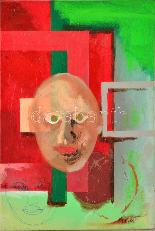 Birkás jelzéssel: Arcok és keretek. Vegyes technika, vászon, 59×40 cm