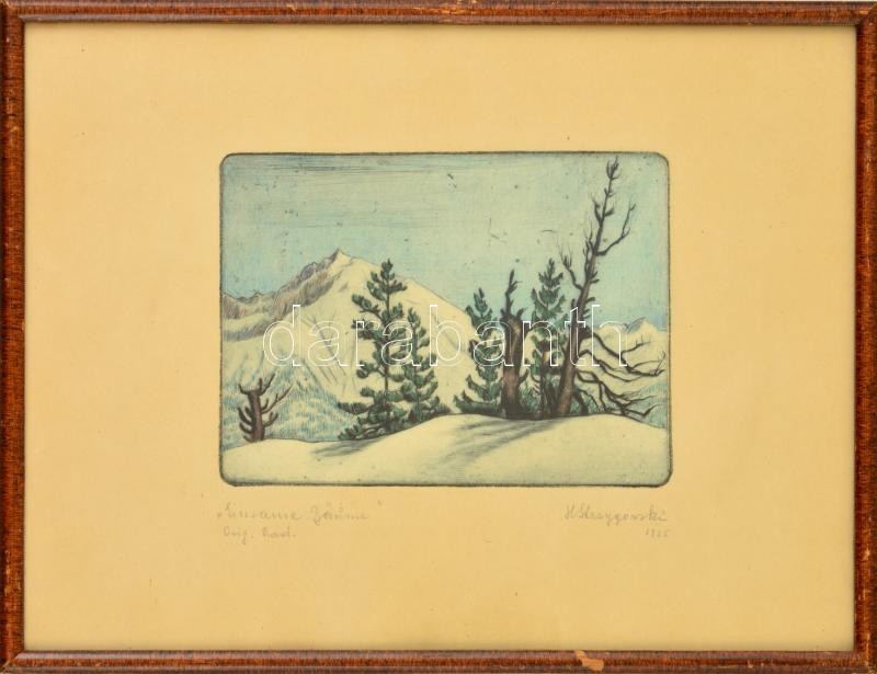 Olvashatatlan jelzéssel: Einsame Bäume. Színezett rézkarc, papír, üveg...