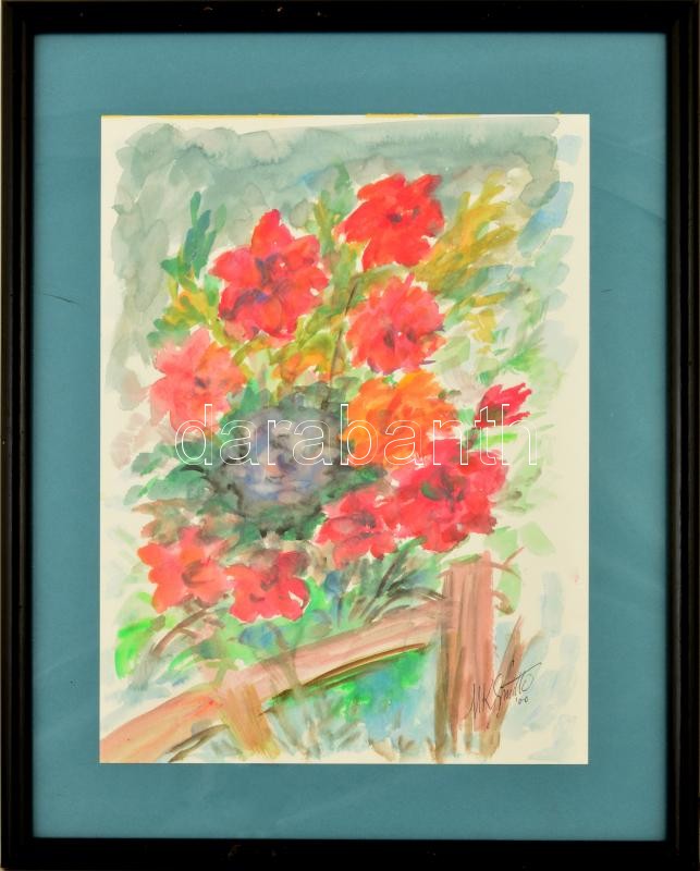 Smith jelzéssel: Virágcsendélet. Akvarell, papír, jelzett, üvegezett keretben, 37,5×27,5 cm