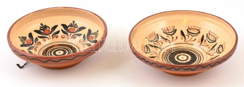 Festett mázas, cserép falitányér pár, d: 20,5 és 19,5 cm