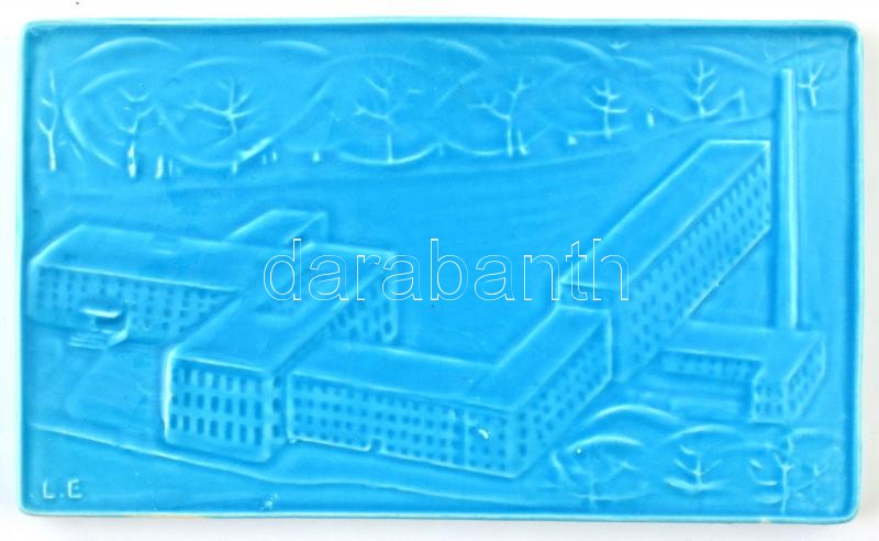 Gránit mázas kerámia fali kép, jelzett, kis kopásnyomokkal, 11,5×19,5 ...