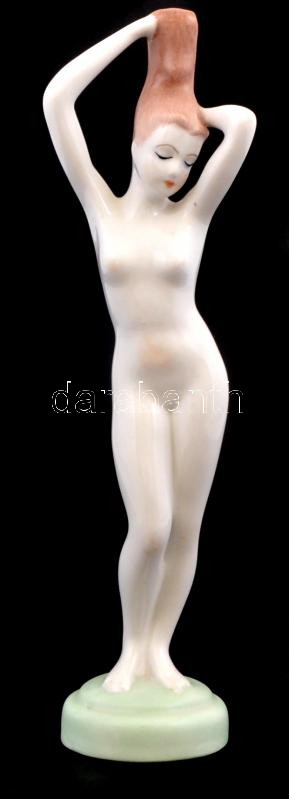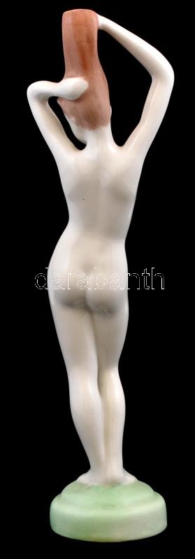 Aquincumi porcelán fésülködő akt, kézzel festett, jelzett, hibátlan, m: 23 cm