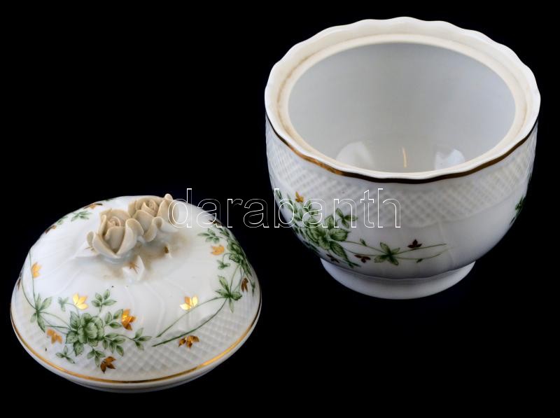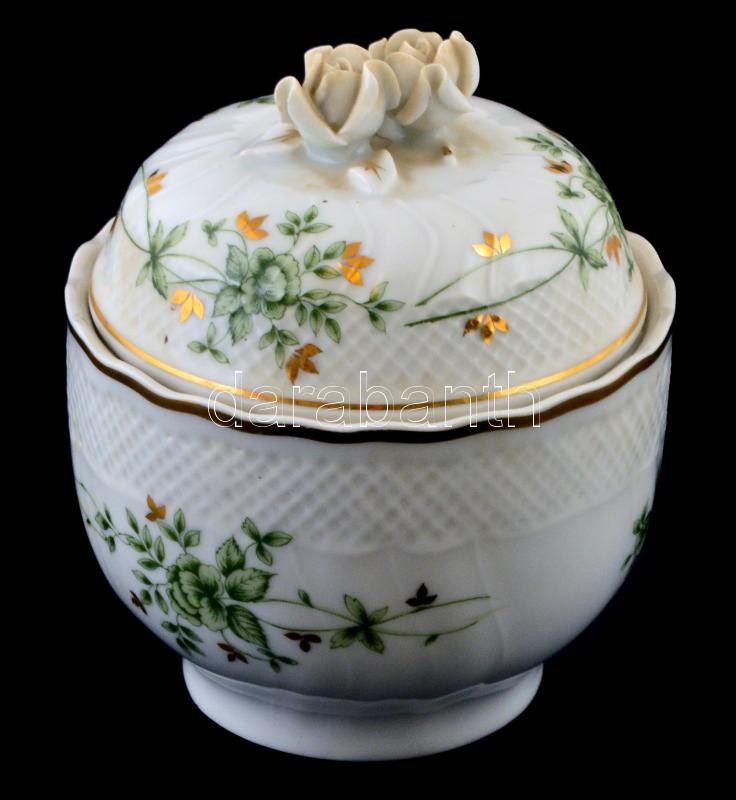 Hollóházi Erika mintás bonbonier, matricás, jelzett, apró kopásnyomokk...