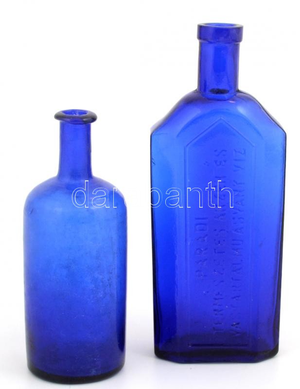 2 db kék üveg: Parád ásványvíz 25 cm, jelzetlen: 15 cm