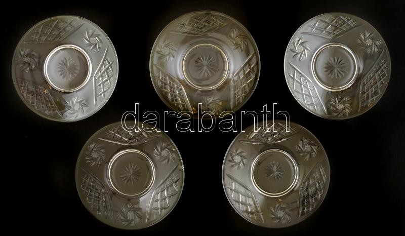 5 db üveg süteményes tányér, kis kopásnyomokkal, d: 16 cm