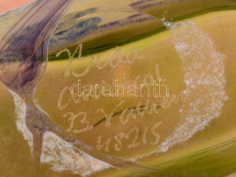 Boda szakított üveg váza, anyagában színezett, jelzett, apró kopásnyom...