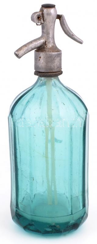Régi román színes szódásüveg, felirattal, kopott, m:32 cm