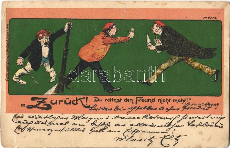 1903 Zurück! Die rettest den Freund nicht mehr! Schiller: Die Bürgschaft / Bruno Bürger & Ottillie litho (Rb)