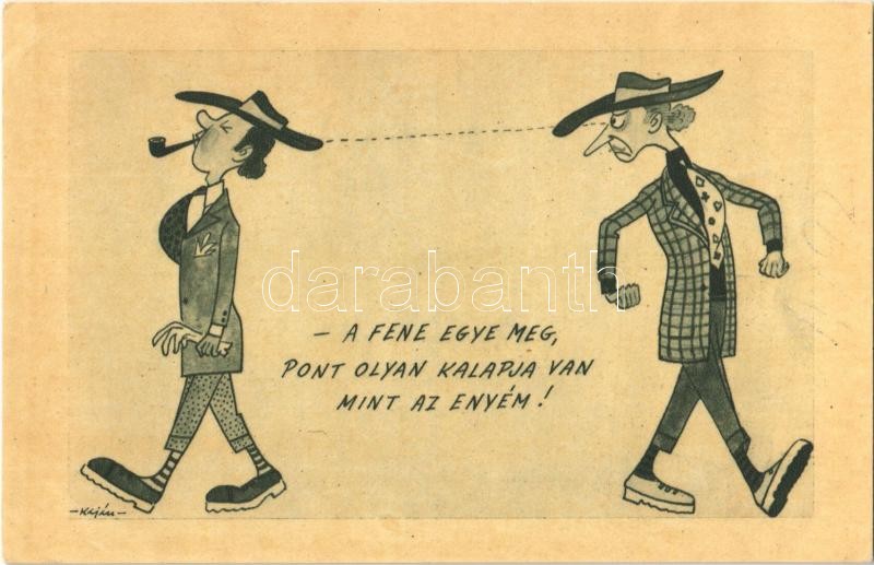 A fene egye meg, pont olyan kalapja van mint az enyém! Képzőművészeti Alap 380. / Hungarian art postcard, fashion humour s: Kaján Tibor