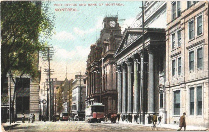 1908 Montreal, Post Office and Bank of Montreal, trams (small tear)